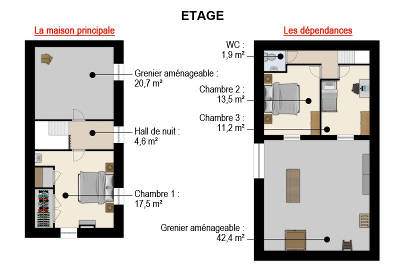 Grenier aménageable (côté maison principale) facilement transformable en chambre supplémentaire |
